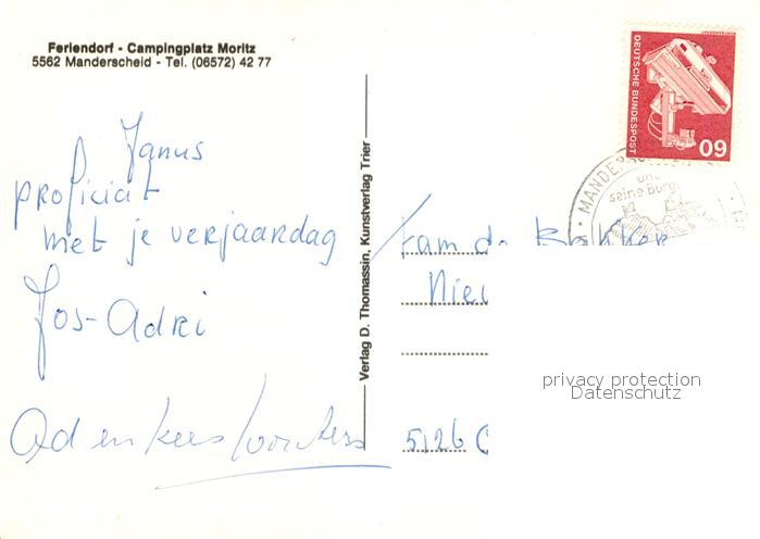 73171396 alte Postkarte Manderscheid Eifel Feriendorf Moritz Campingplatz Landschaftspanorama postalisch gelaufen Erhaltung siehe scans [FriedD77] KatCode: 11110007231080