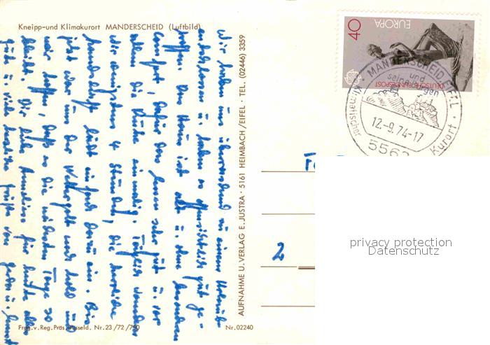 72719064 alte Postkarte Manderscheid Eifel Fliegeraufnahme postalisch gelaufen Erhaltung siehe scans [LiesaD40] KatCode: 11110007231080