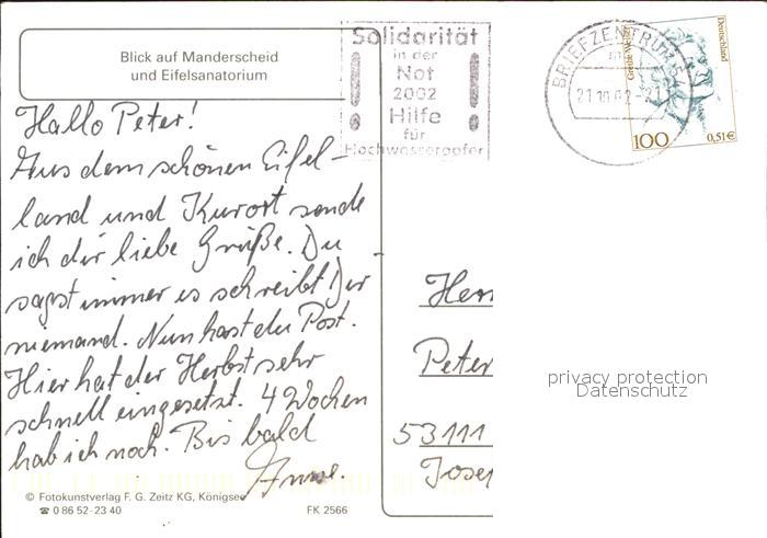 71950561 alte Postkarte Manderscheid Eifel Fliegeraufnahme mit Eiffelsanatorium postalisch gelaufen Erhaltung siehe scans KatCode: 11110007231080