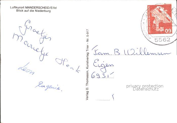 72469487 alte Postkarte Manderscheid Eifel Fliegeraufnahme mit Niederburg postalisch gelaufen Erhaltung siehe scans KatCode: 11110007231080
