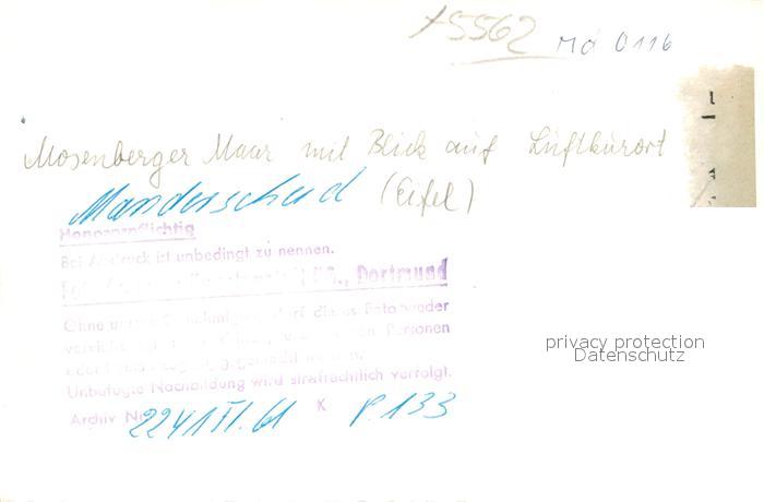 42977822 Manderscheid Eifel Fliegeraufnahme Mosberger Maar postalisch nicht gelaufen Verlagsrohabzug (keine Postkartenrückseite) Erhaltung siehe scans [AndreD76] KatCode: 11110007231080