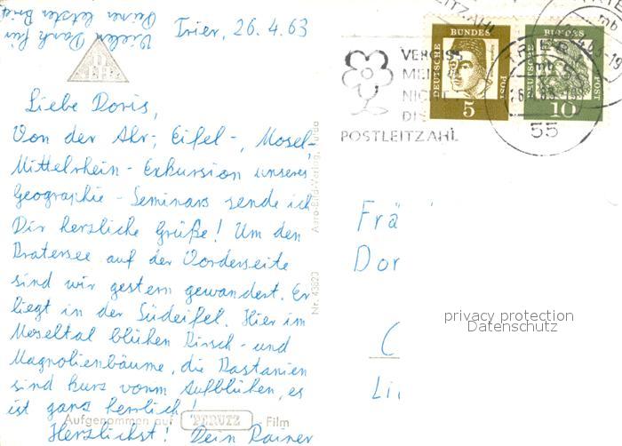 73248750 alte Postkarte Manderscheid Eifel Fliegeraufnahme Mosenberger Kratersee postalisch gelaufen Erhaltung siehe scans [NatalD47] KatCode: 11110007231080
