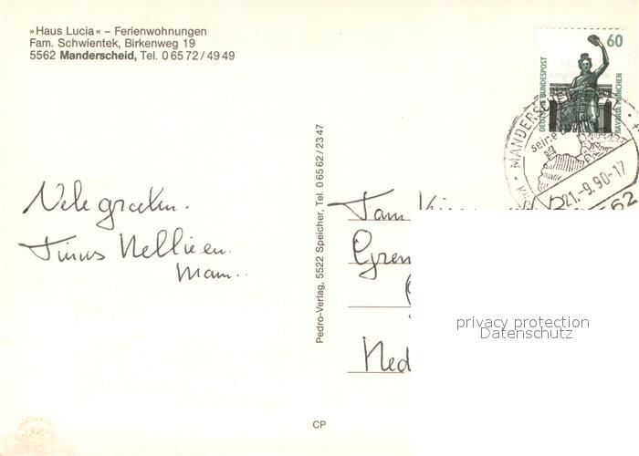 73711902 alte Postkarte Manderscheid Eifel Haus Lucia Ferienwohnungen Aussenansichten postalisch gelaufen Erhaltung siehe scans [LiesaD40] KatCode: 11110007231080