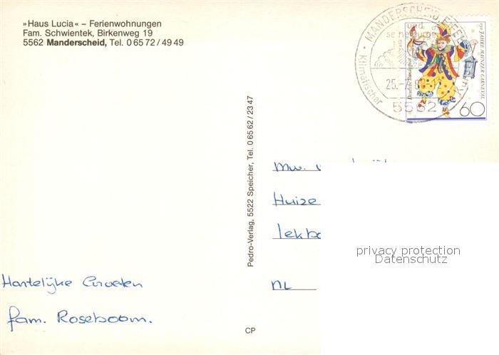 73171397 alte Postkarte Manderscheid Eifel Haus Lucia Ferienwohnungen Burgen postalisch gelaufen Erhaltung siehe scans [FriedD77] KatCode: 11110007231080