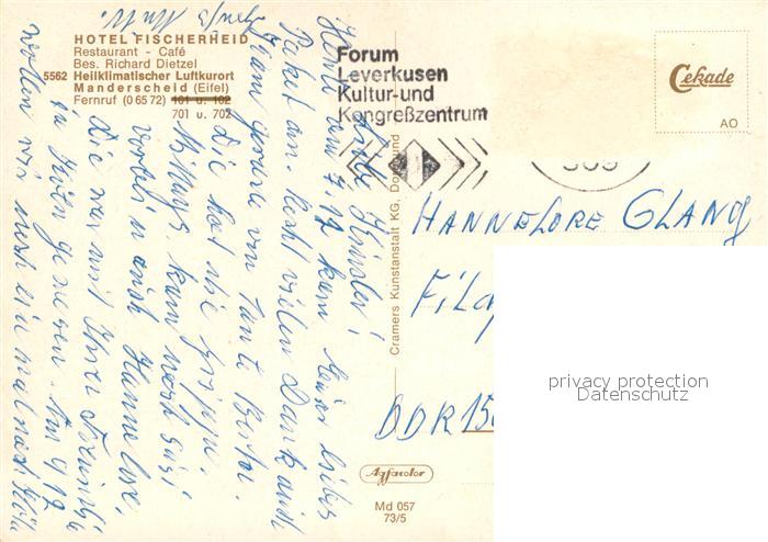 73711893 alte Postkarte Manderscheid Eifel Hotel-Cafe Fischerheid Innen- und Aussenansichten postalisch gelaufen Erhaltung siehe scans [LiesaD40] KatCode: 11110007231080