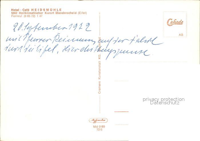 Manderscheid Eifel Hotel Cafe Heidsmuehle postalisch nicht gelaufen Erhaltung siehe scans