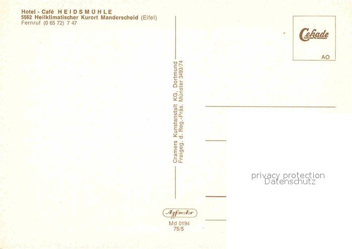 72862395 Manderscheid Eifel Hotel Cafe Heidsmuehle Fliegeraufnahme postalisch nicht gelaufen Erhaltung siehe scans [FriedD77] KatCode: 11110007231080