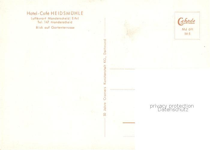 73859318 Manderscheid Eifel Hotel Cafe Heidsmuehle Gartenterrasse postalisch nicht gelaufen Erhaltung siehe scans [WerneD78] KatCode: 11110007231080