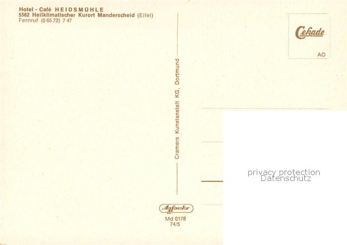 73711898 Manderscheid Eifel Hotel-Cafe Heidsmuehle m. Gartenanlagen u. Restaurant postalisch nicht gelaufen Erhaltung siehe scans [LiesaD40] KatCode: 11110007231080