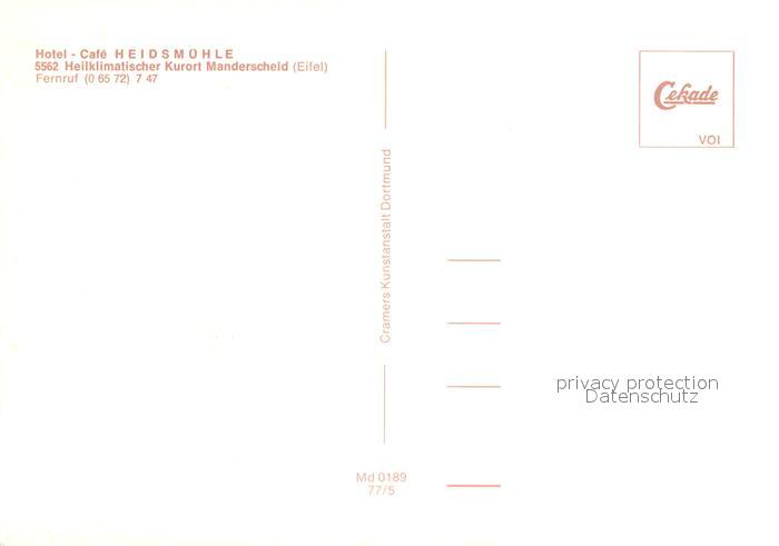 73711894 Manderscheid Eifel Hotel-Cafe Heidsmuehle Teilansichten m. Gartenpartie und Terrasse postalisch nicht gelaufen Erhaltung siehe scans [LiesaD40] KatCode: 11110007231080