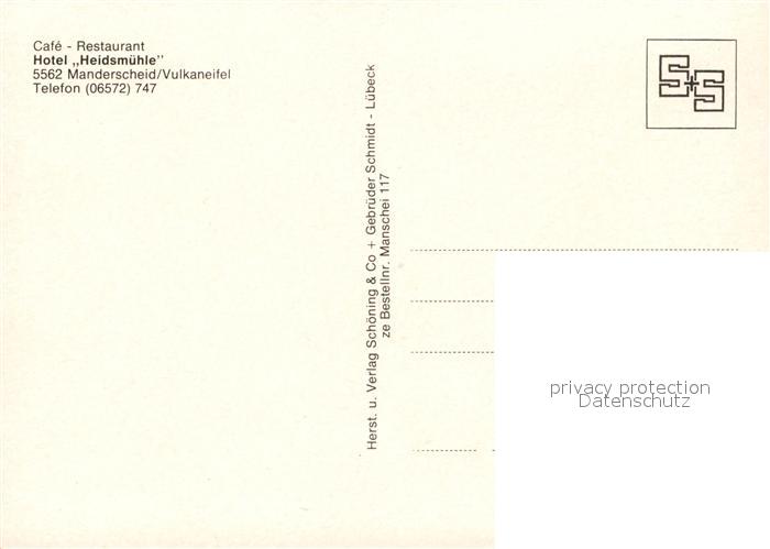 73019226 Manderscheid Eifel Hotel Heidsmuehle postalisch nicht gelaufen Erhaltung siehe scans [WerneD78] KatCode: 11110007231080