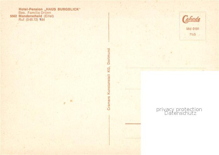 73707695 Manderscheid Eifel Hotel Pension Haus Burgblick postalisch nicht gelaufen Erhaltung siehe scans [WerneD78] KatCode: 11110007231080