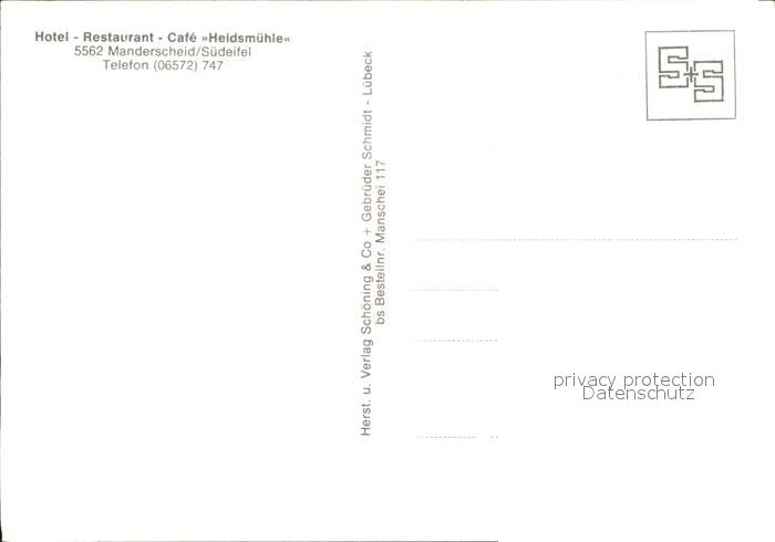 72210729 Manderscheid Eifel Hotel Restaurant Heidsmuehle Park Springbrunnen Schwanenteich postalisch nicht gelaufen Erhaltung siehe scans KatCode: 11110007231080