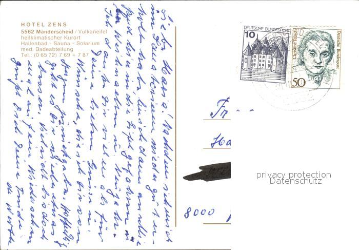72424924 alte Postkarte Manderscheid Eifel Hotel Zens postalisch gelaufen Erhaltung siehe scans KatCode: 11110007231080