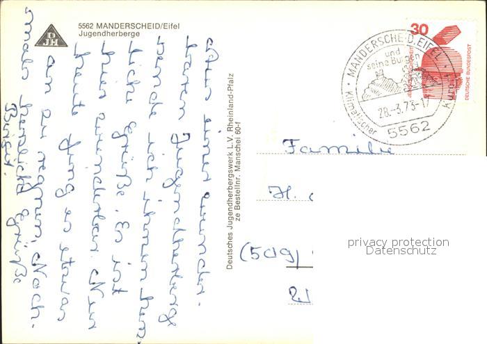 72041927 alte Postkarte Manderscheid Eifel Jugendherberge postalisch gelaufen Erhaltung siehe scans KatCode: 11110007231080