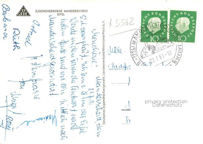 42977844 alte Postkarte Manderscheid Eifel Jugendherberge postalisch gelaufen Erhaltung siehe scans [AndreD76] KatCode: 11110007231080