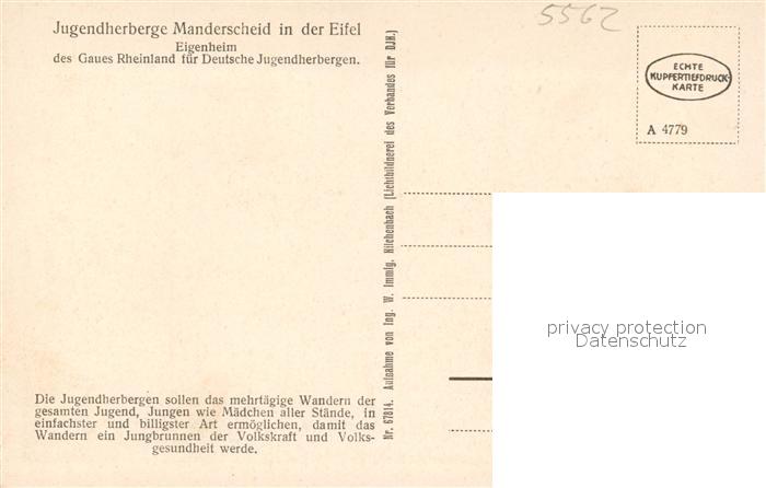 43350548 Manderscheid Eifel Jugendherberge Kupfertiefdruck postalisch nicht gelaufen Erhaltung siehe scans [FriedD77] KatCode: 11110007231080