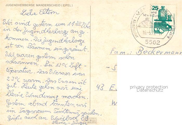 73766331 alte Postkarte Manderscheid Eifel Jugendherberge Manderscheid Aussenansicht postalisch gelaufen Erhaltung siehe scans [LiesaD40] KatCode: 11110007231080
