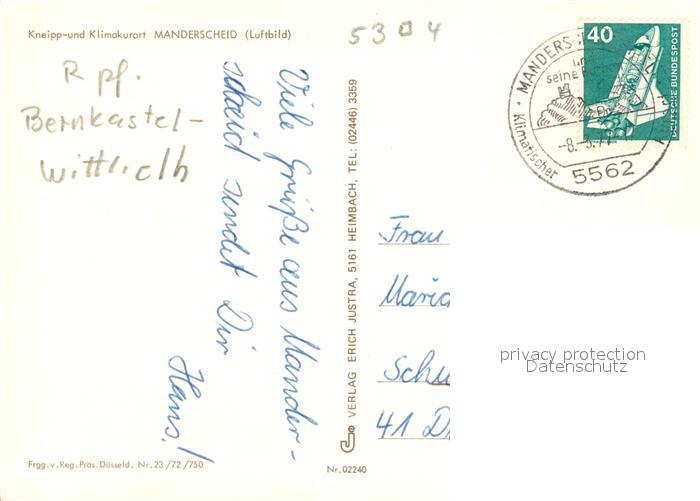 73171394 alte Postkarte Manderscheid Eifel Kneipp und Klimakurort Fliegeraufnahme postalisch gelaufen Erhaltung siehe scans [FriedD77] KatCode: 11110007231080