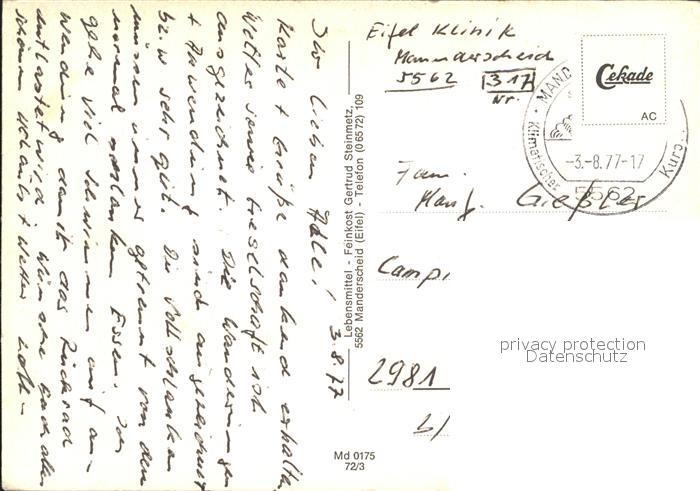 72177573 alte Postkarte Manderscheid Eifel Moosenberger Maar Wasserfall kl Kyll Burgweiher postalisch gelaufen Erhaltung siehe scans KatCode: 11110007231080