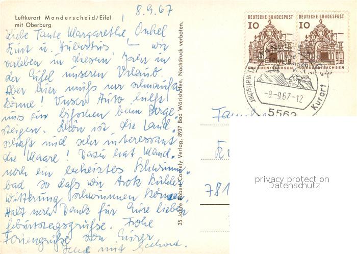 73181661 alte Postkarte Manderscheid Eifel Panorama Oberburg postalisch gelaufen Erhaltung siehe scans [KathaD81] KatCode: 11110007231080