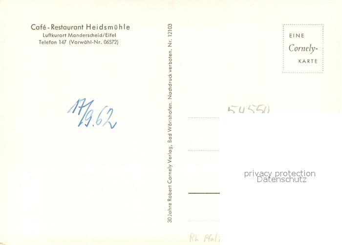73722768 Manderscheid Eifel Restaurant-Cafe Heidsmuehle postalisch nicht gelaufen Erhaltung siehe scans [LiesaD40] KatCode: 11110007231080