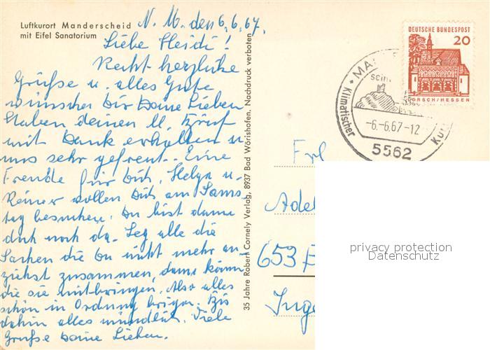 73711897 alte Postkarte Manderscheid Eifel Teilansichten m. Eifel Sanatorium postalisch gelaufen Erhaltung siehe scans [LiesaD40] KatCode: 11110007231080