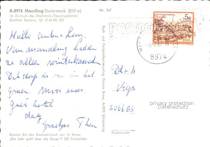 72092309 alte Postkarte Mandling Ennstal Dorfpartie mit Gasthof Taverne und Dachstein postalisch gelaufen Erhaltung siehe scans KatCode: 11390312041005