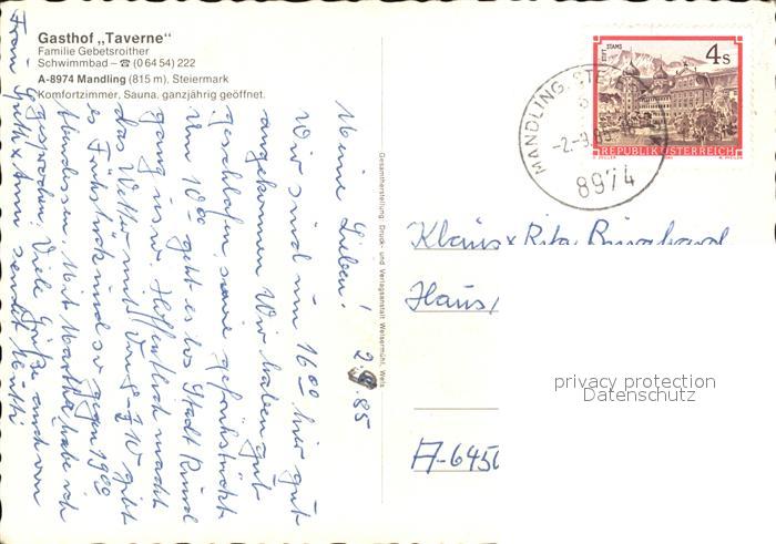 72445450 alte Postkarte Mandling Ennstal Gasthof Taverne Schwimmbad postalisch gelaufen Erhaltung siehe scans KatCode: 11390312041005