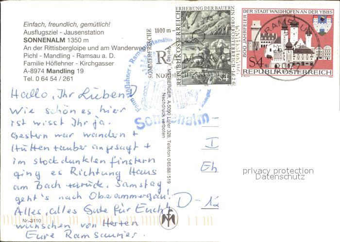 72468236 alte Postkarte Mandling Ramsau Ausflugsziel Jausenstation Sonnenalm postalisch gelaufen Erhaltung siehe scans KatCode: 11390222061236