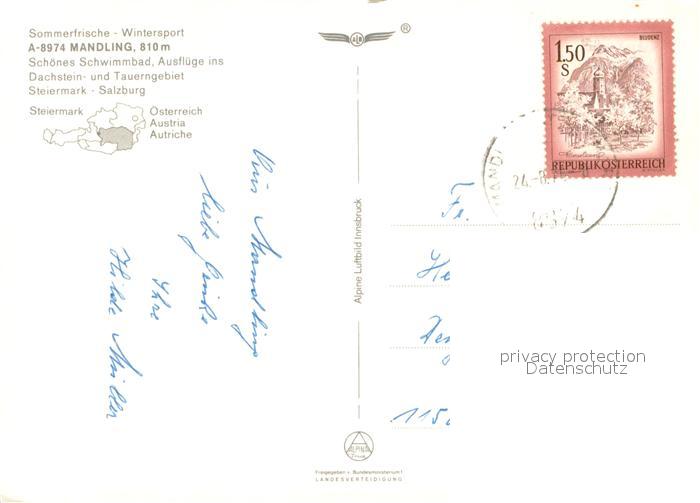 73656759 alte Postkarte Mandling Ramsau Fliegeraufnahme mit Dachstein postalisch gelaufen Erhaltung siehe scans [WerneD78] KatCode: 11390222061236