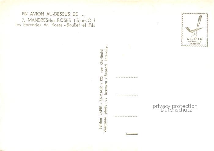 13155102 Mandres-les-Roses Fliegeraufnahme Gewaechshaeuser postalisch nicht gelaufen Erhaltung siehe scans [KathaD81] KatCode: 11170094194047