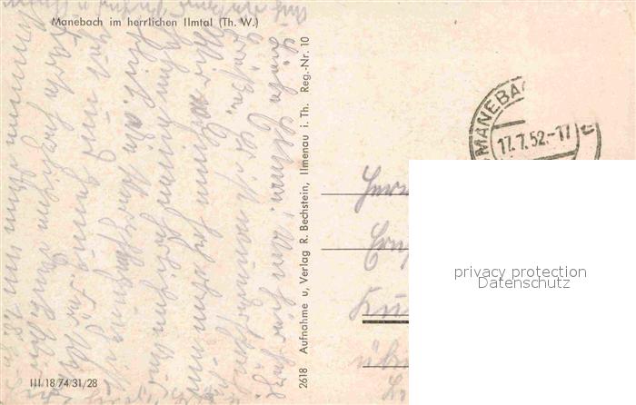 72681720 alte Postkarte Manebach Gesamtansicht postalisch gelaufen Erhaltung siehe scans [AndreD76] KatCode: 11110016070029