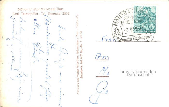 72280835 alte Postkarte Manebach Moenchhof postalisch gelaufen Erhaltung siehe scans KatCode: 11110016070029