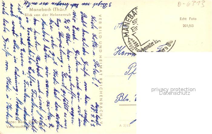 43352847 alte Postkarte Manebach Panorama von der Helenenruh postalisch gelaufen Erhaltung siehe scans [KathaD81] KatCode: 11110016070029