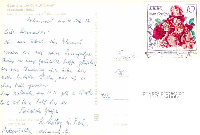 72680099 alte Postkarte Manebach Restaurant Cafe Glueckauf postalisch gelaufen Erhaltung siehe scans [LiesaD40] KatCode: 11110016070029