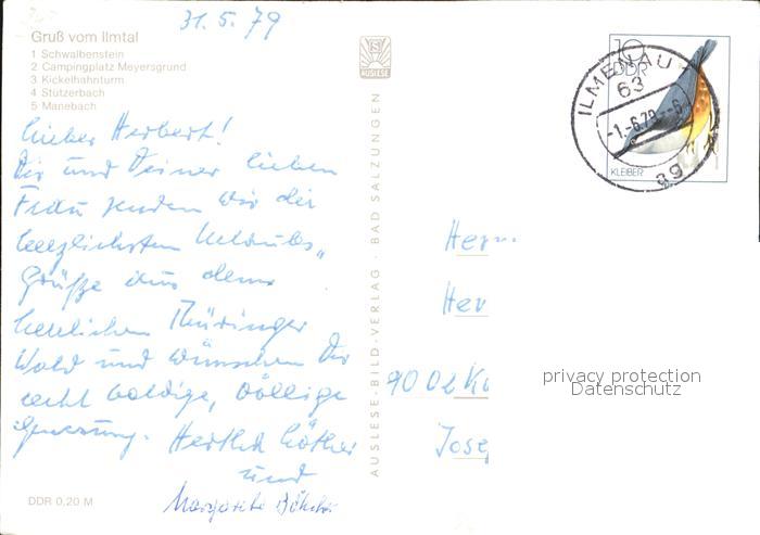 alte Postkarte Manebach Stuetzerbach Kickelhahnturm Campingplatz Meyersgrund postalisch gelaufen Erhaltung siehe scans