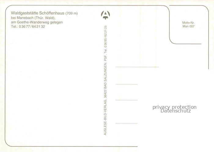 74029262 Manebach Waldgaststaette Schoeffenhaus am Goethe-Wanderweg postalisch nicht gelaufen Erhaltung siehe scans [FriedD77] KatCode: 11110016070029
