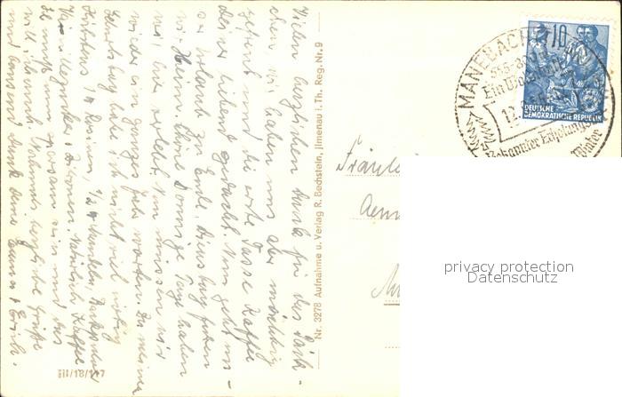 71906734 alte Postkarte Manebach Waldweg zum Schoeffenhaus postalisch gelaufen Erhaltung siehe scans KatCode: 11110016070029