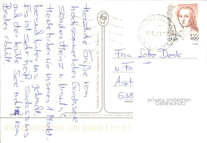 old postcard Manerba del Garda Camping Rio Ferienglueck postalisch gelaufen Erhaltung siehe scans