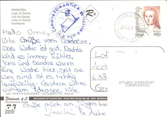 old postcard Manerba del Garda Fliegeraufnahme Hafen Segelboote postalisch gelaufen Erhaltung siehe scans