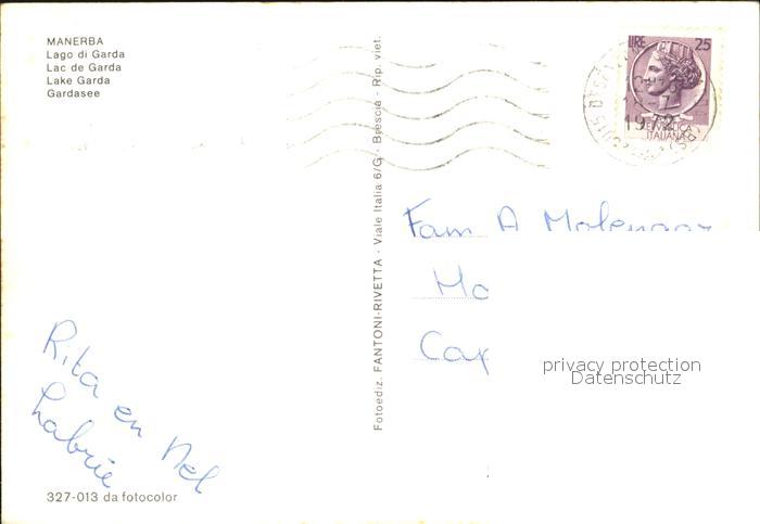 old postcard Manerba del Garda Segelboote Stadtansicht postalisch gelaufen Erhaltung siehe scans