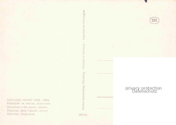 74017001 Manet Edouard Kuenstlerkarte Fruehstueck in Atelier postalisch nicht gelaufen Erhaltung siehe scans [IrynaD87] KatCode: 22240000003200