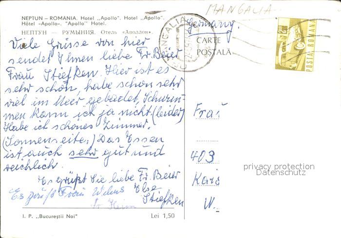 old postcard Mangalia Hotel Apollo postalisch gelaufen Erhaltung siehe scans
