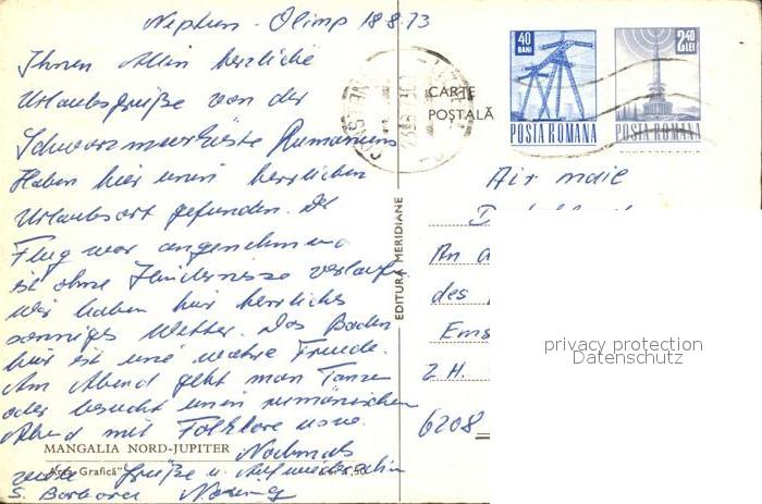 old postcard Mangalia Nord Jupiter Badeort Schwarzmeerkueste postalisch gelaufen Erhaltung siehe scans