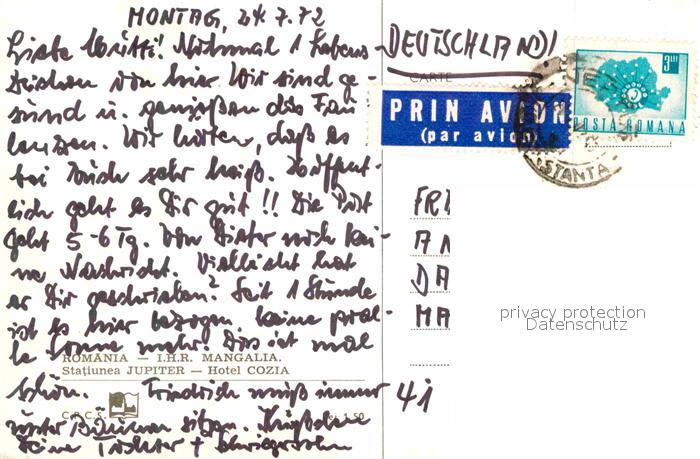 old postcard Mangalia Nord Jupiter Hotel Cozia Fliegeraufnahme postalisch gelaufen Erhaltung siehe scans [WerneD78]