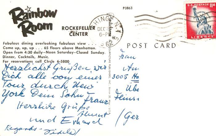 old postcard Manhattan Isle of New York View from the Rainbow Room showing Central Park postalisch gelaufen Erhaltung siehe scans [FriedD77]