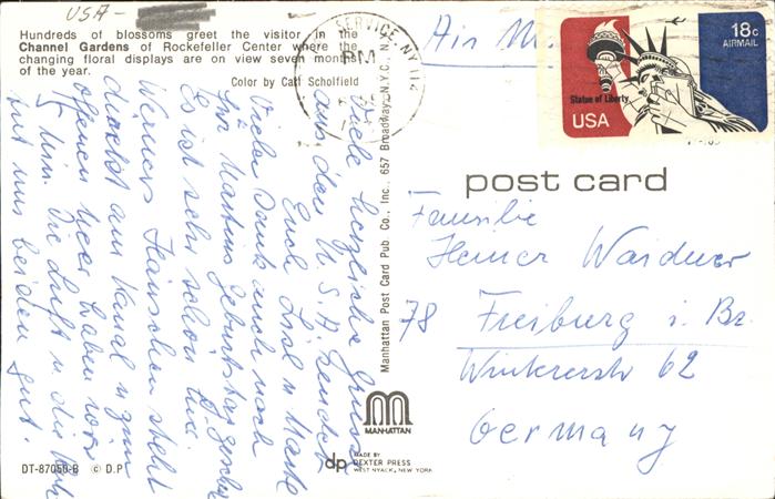 11491793 old postcard Manhattan New York Channel Gardens of Rockefeller Center postalisch gelaufen Erhaltung siehe scans KatCode: 14140340000000