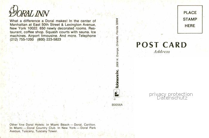 72668106 Manhattan New York Doral Inn postalisch nicht gelaufen Erhaltung siehe scans [WerneD78] KatCode: 14140340000000