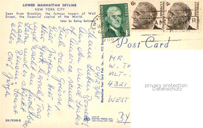 72950574 old postcard Manhattan New York Skyline postalisch gelaufen Erhaltung siehe scans [WerneD78] KatCode: 14140340000000